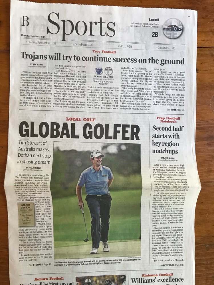 As many of you know, my major target this year was to progress through all the stages of the Web.Com Tour qualifying tournaments and gaining playing status on the Web.Com tour as the major pathway to the PGA Tour. After a year of preparation I felt that my game was as good as it could be with all things considered. I was lucky enough to play the Highland Oaks Golf Club on the Robert Trent Jones Golf Trail in Dothan, Alabama. The course was presented in great condition with fantastic weather all week.